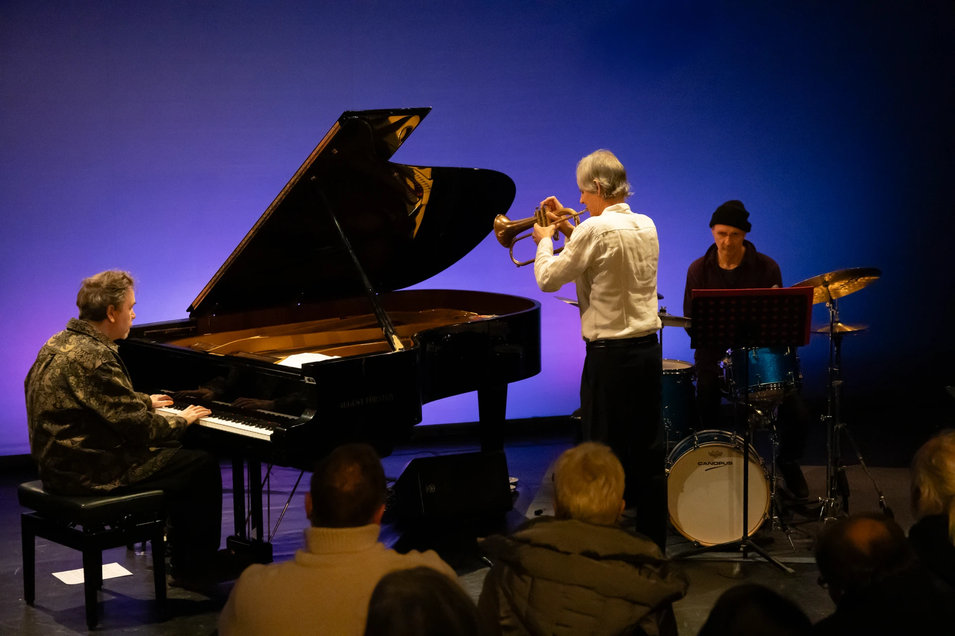 With a keen sense of dynamics and atmosphere, a musical dialogue full of vitality emerges – sometimes complex and rhythmically intricate, then calm, melodious and introverted. The gentle flugelhorn, carried by the warm sounds of the piano, opens up spaces for both silence and movement.